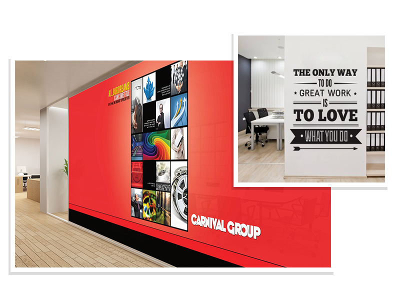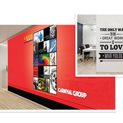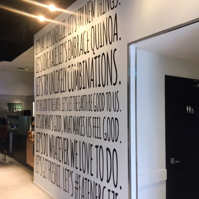 Transform Your Space with Custom Digital Wall decals, Wall Murals, and Floor Graphics. Wall graphics can be made in a variety of methods, from vinyl & digital decals to custom wallpapers, using any picture or design of your choice we can manufacture wall graphics in any size, & color, whether it’s your company logo or an image covering the entire wall. Our wallpaper media is a peel and stick, polyester fabric, adhesive media material that can be installed on virtually any surface and then easily removed without leaving a sticky residue. From short-term removable to long lasting permanent wall decals, we can do it all.